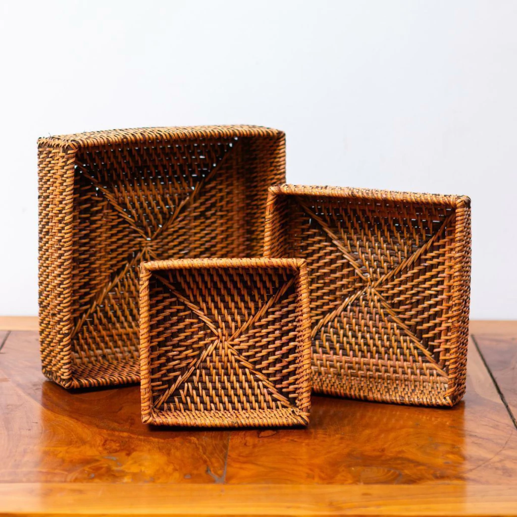 Bandeja de Palha Rattan Importada de Bali (Quadrada)