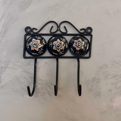Cabideiro de Cerâmica e Ferro (3 Ganchos)