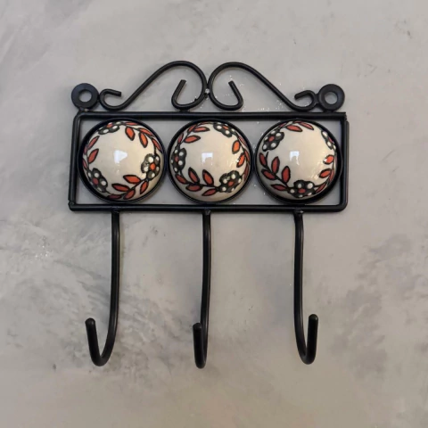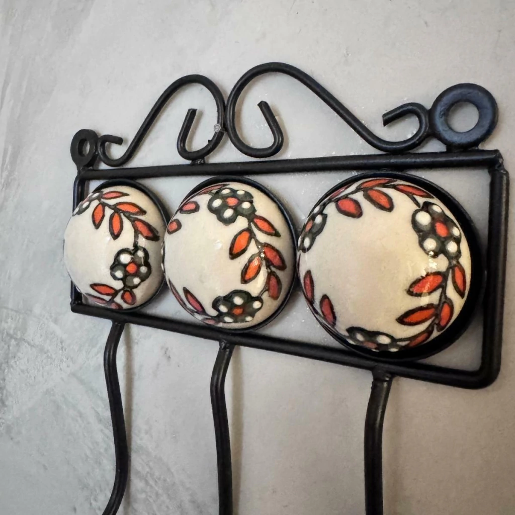 Cabideiro de Cerâmica e Ferro (3 Ganchos)