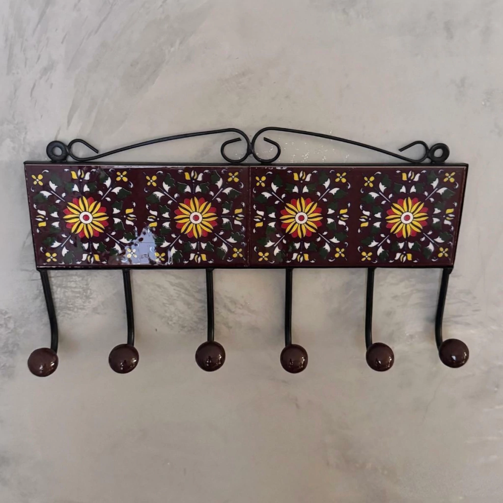 Cabideiro de Cerâmica e Ferro (6 Ganchos)