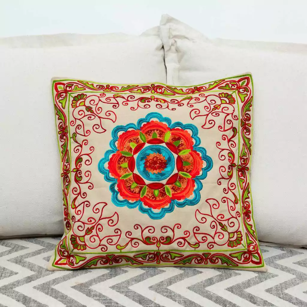 Capa de Almofada Bordada 100% Algodão 40x40cm Importada da India