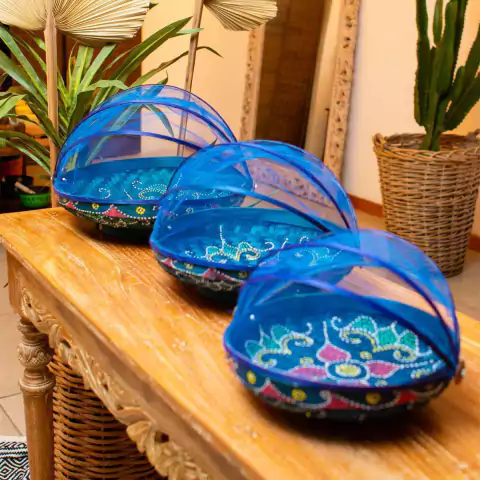 Nosso Cesto de Palha é perfeito para trazer charme à sua mesa. Ele é pintado à mão e feito de fibras naturais de bambu. É redondo com base abaulada e possui tela retrátil de tule que protege o alimento de insentos. É perfeito para pães, bolos e frutas. Escolha o seu cesto favorito e deixe o ambiente mais bonito!