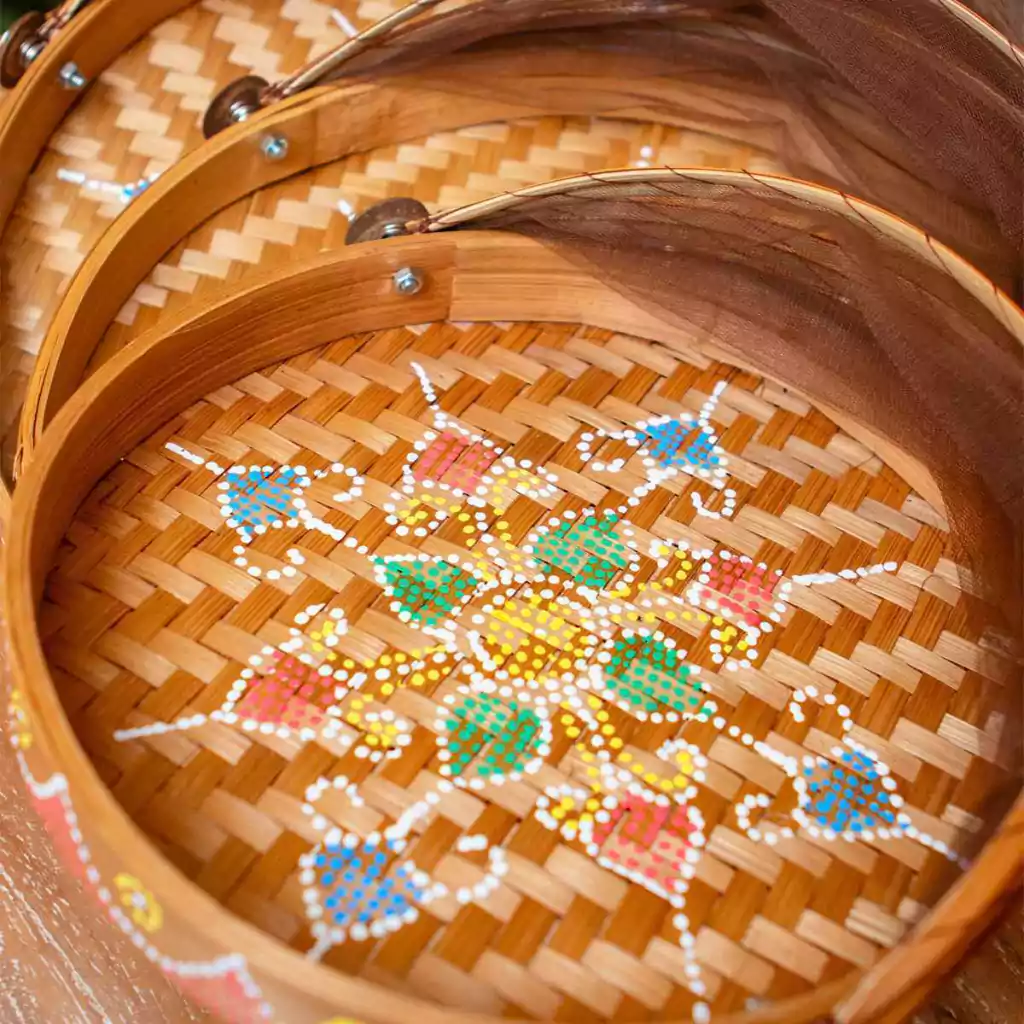 Nosso Cesto de Palha é perfeito para trazer charme à sua mesa. Ele é pintado à mão e feito de fibras naturais de bambu. É redondo com base abaulada e possui tela retrátil de tule que protege o alimento de insentos. É perfeito para pães, bolos e frutas. Escolha o seu cesto favorito e deixe o ambiente mais bonito!