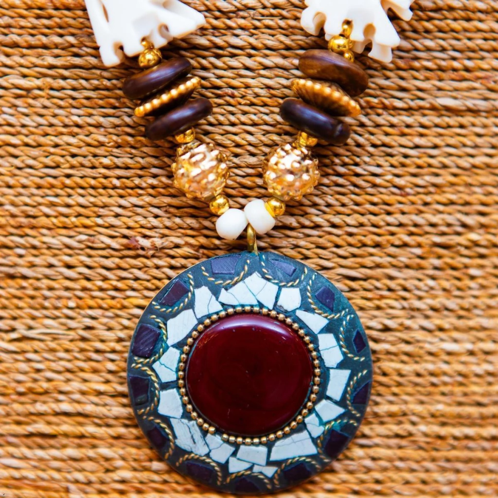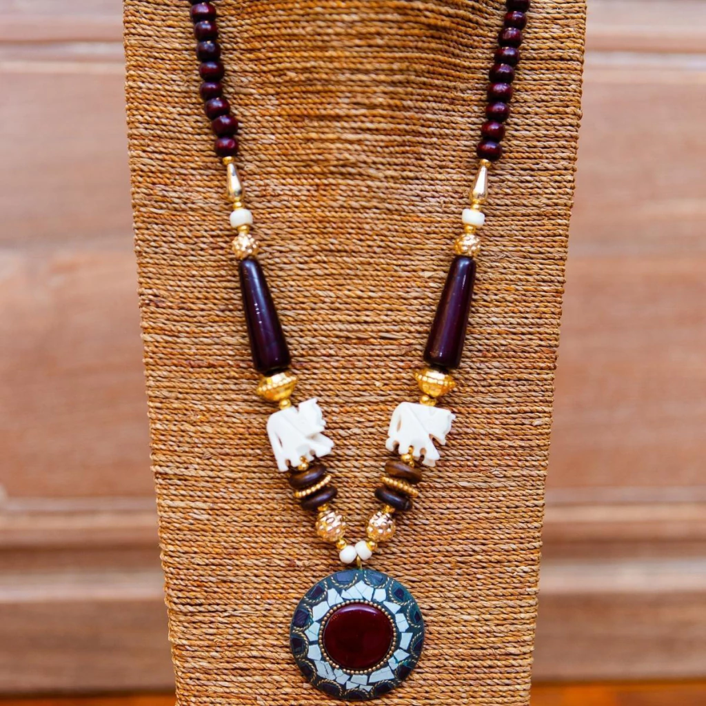 O colar indiano Elefantes de madeira e metal celebra a beleza do artesanato. A mistura de materiais naturais e metálicos cria um visual único. Os elefantes, símbolos de sabedoria e prosperidade na cultura indiana, conferem significado. Este acessório adiciona estilo e elegância, realçando qualquer visual com um toque de história e cultura.