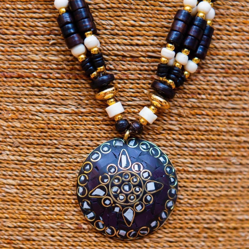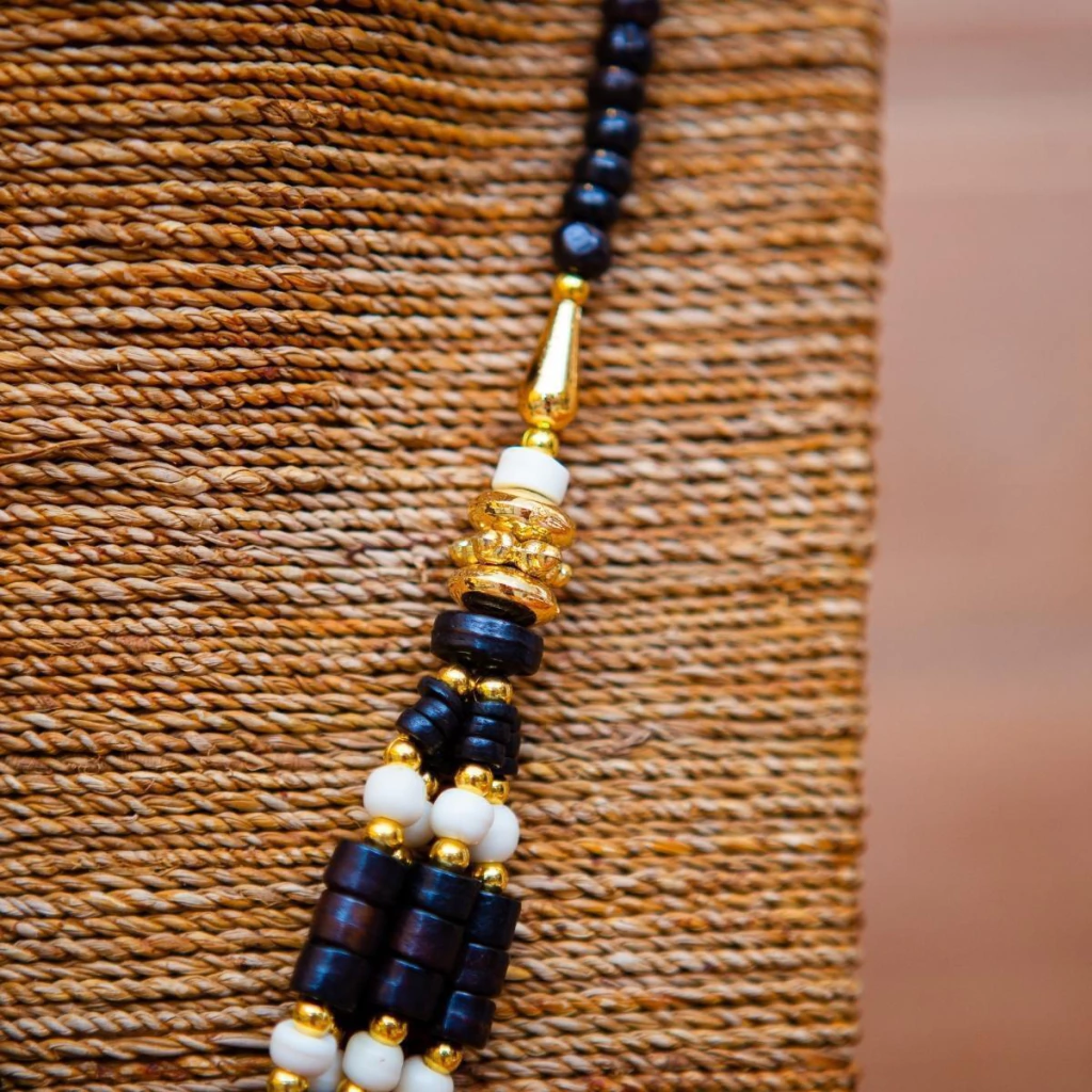 O colar indiano de madeira e metal celebra a beleza do artesanato. A mistura de materiais naturais e metálicos cria um visual único. Este acessório adiciona estilo e elegância, realçando qualquer visual com um toque de história e cultura.