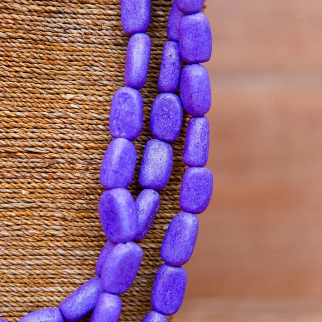 O colar indiano de resina destaca-se por suas cores vibrantes e design artesanal. Use-o para complementar looks estampados.