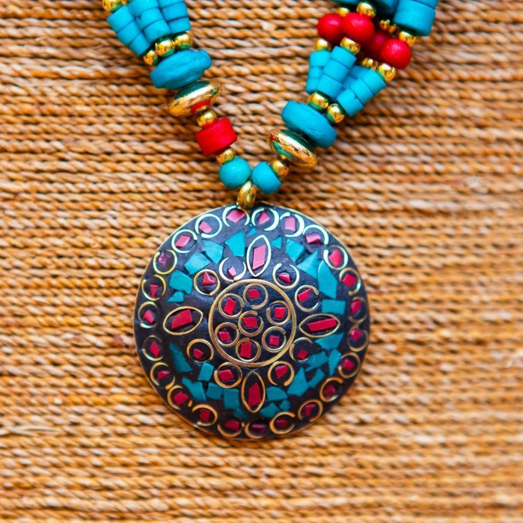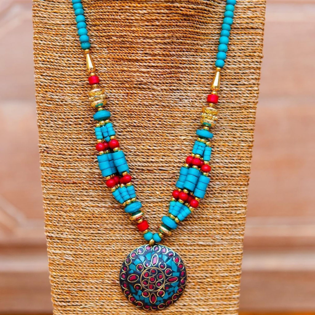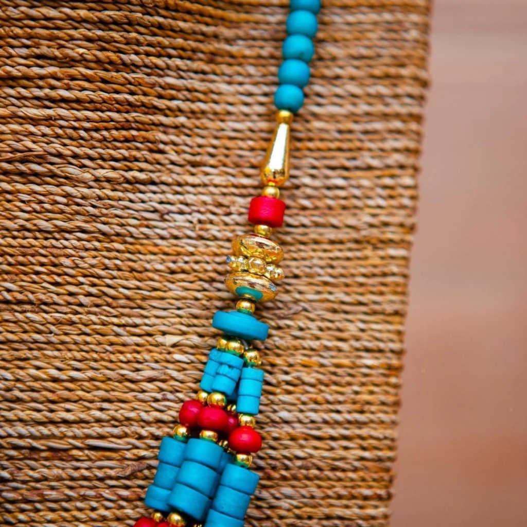 O colar indiano de madeira e metal celebra a beleza do artesanato. A mistura de materiais naturais e metálicos cria um visual único. Este acessório adiciona estilo e elegância, realçando qualquer visual com um toque de história e cultura.