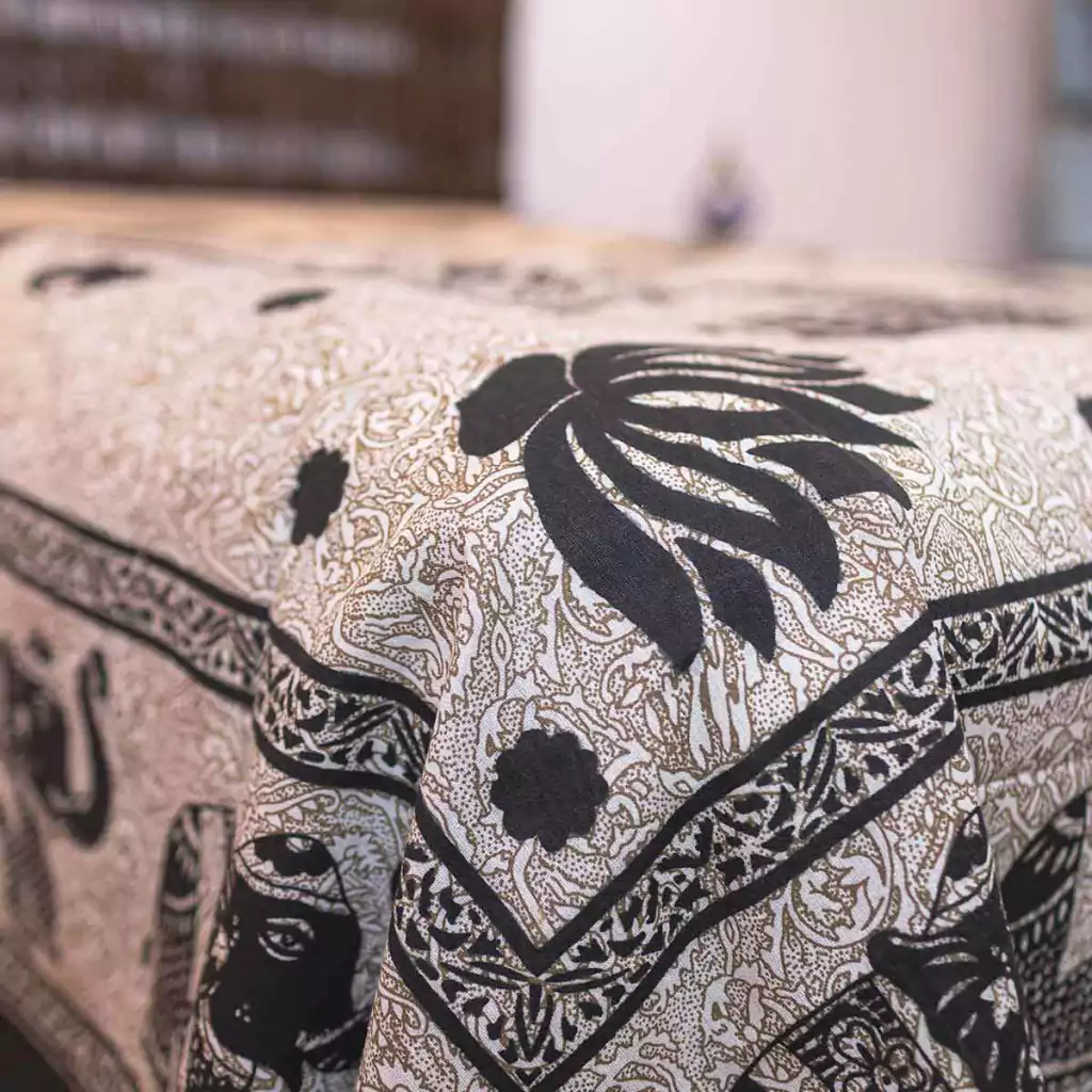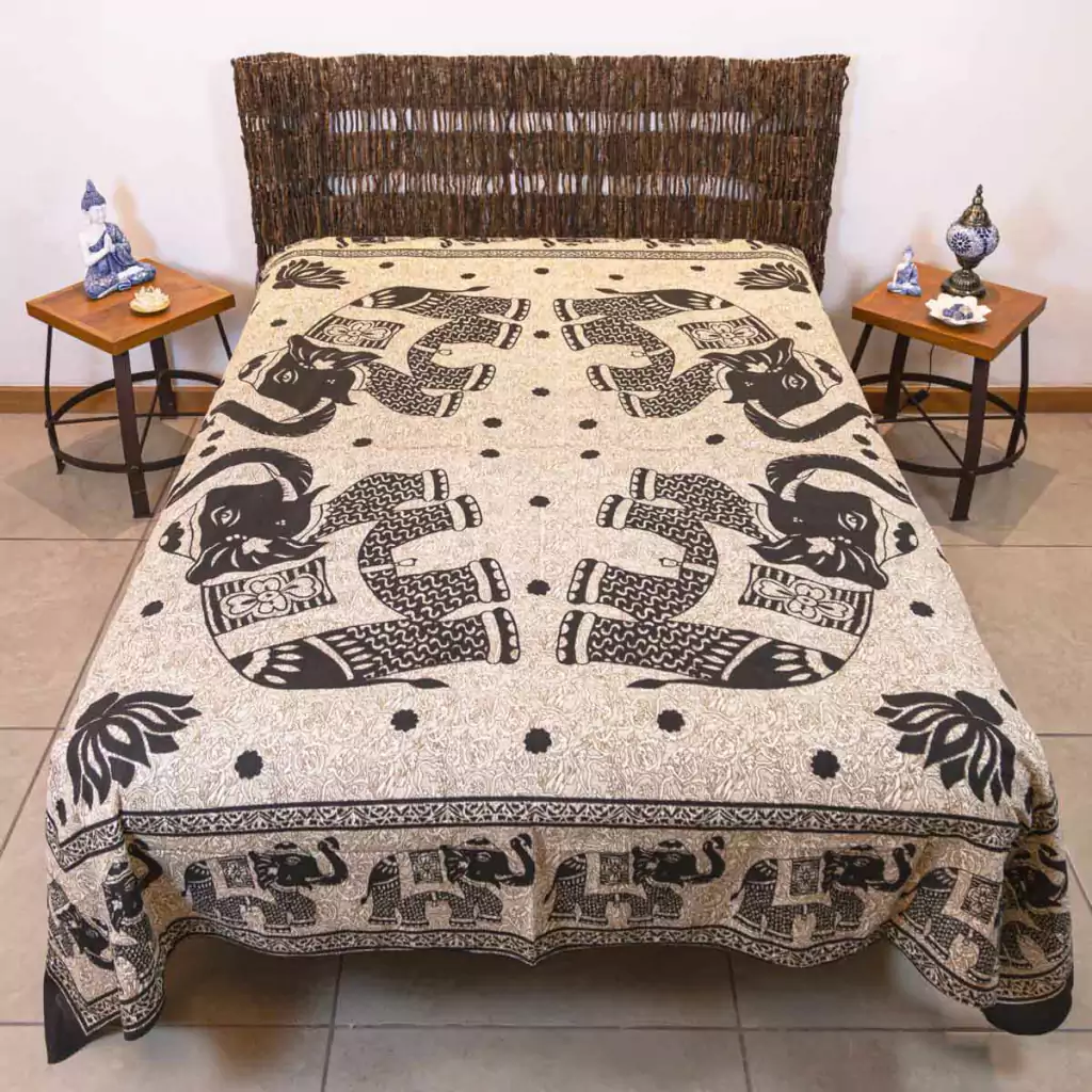 Colcha Indiana Elefantes 100% Algodão Preto & Bege