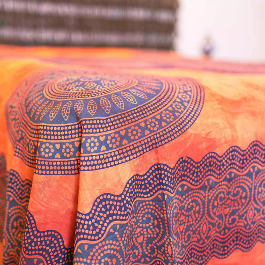Colcha Indiana Mandala 100% Algodão Laranja & Azul