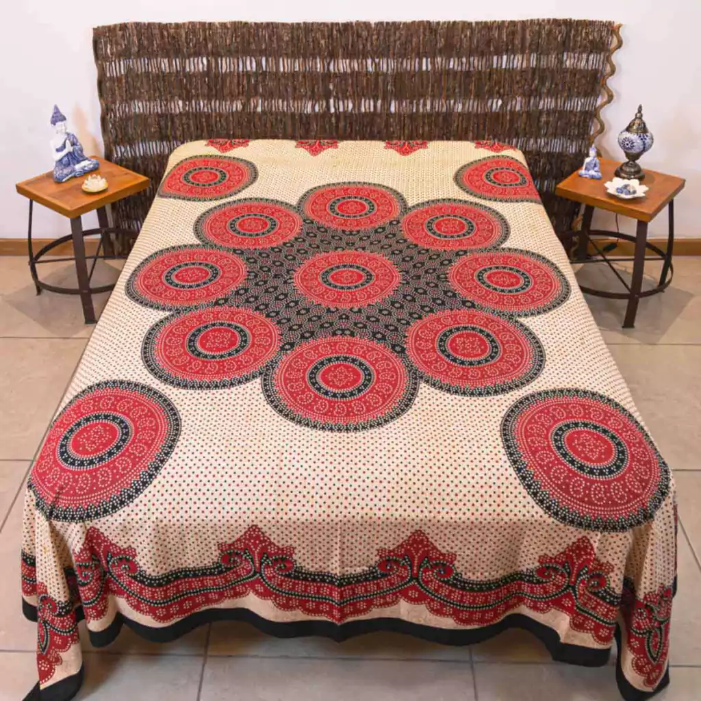 Colcha Indiana Mandala 100% Algodão Vermelho & Preto