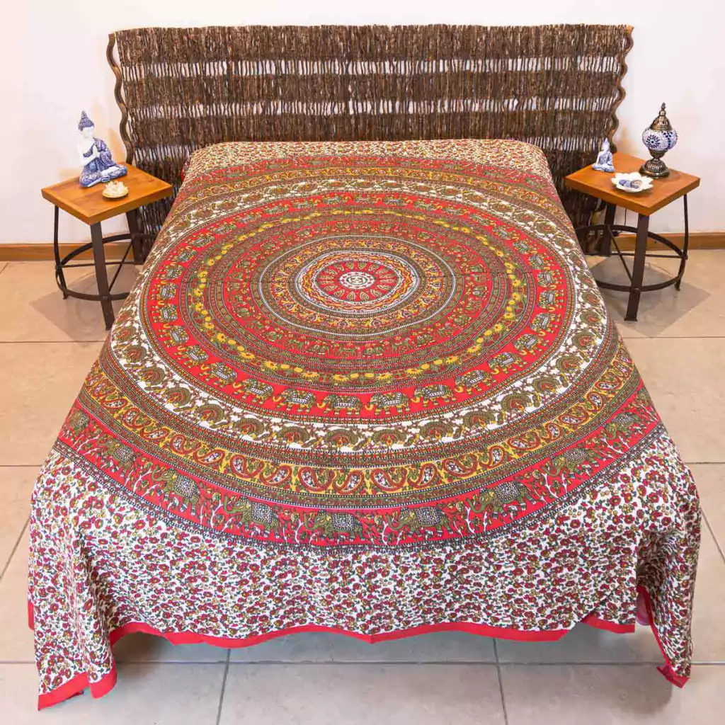 As Colchas Indianas são perfeitas para dar alegria e charme ao ambiente. Possuem estampas variadas com imagens de mandalas, deuses, animais, flores etc. Possuem um charme único e um toque artesanal para deixar seu ambiente mais aconchegante. Podem ser usadas em camas, sofás, poltronas, como painéis de parede, toalhas de picnic e cangão.