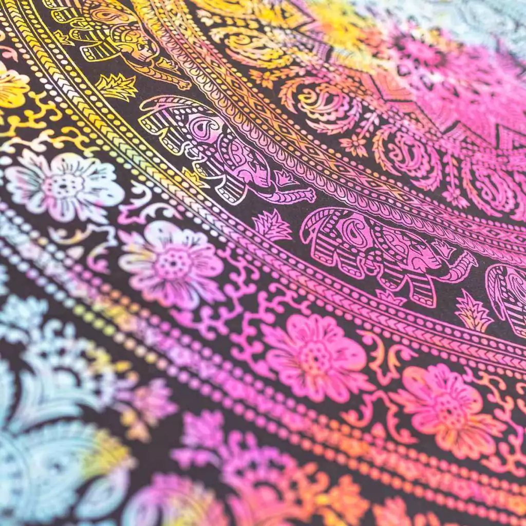 Colcha Indiana Mandala Elefantes 100% Algodão Colorida