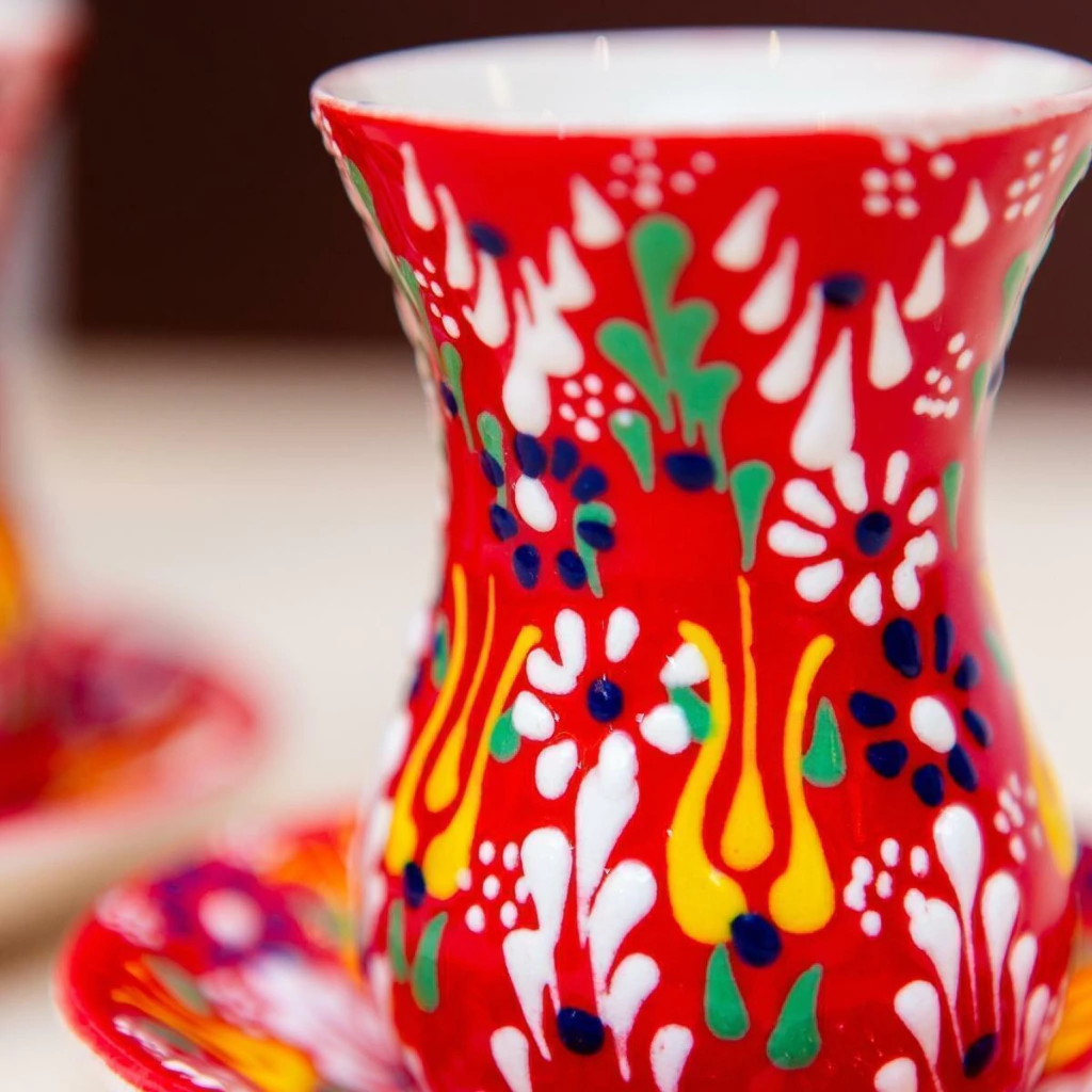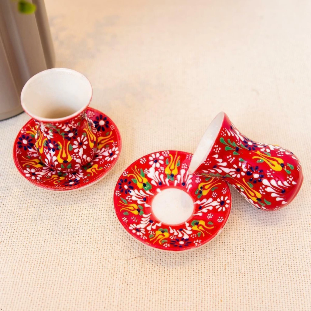 Dupla de Xícaras Pintadas à Mão Importadas da Turquia (Vermelho)