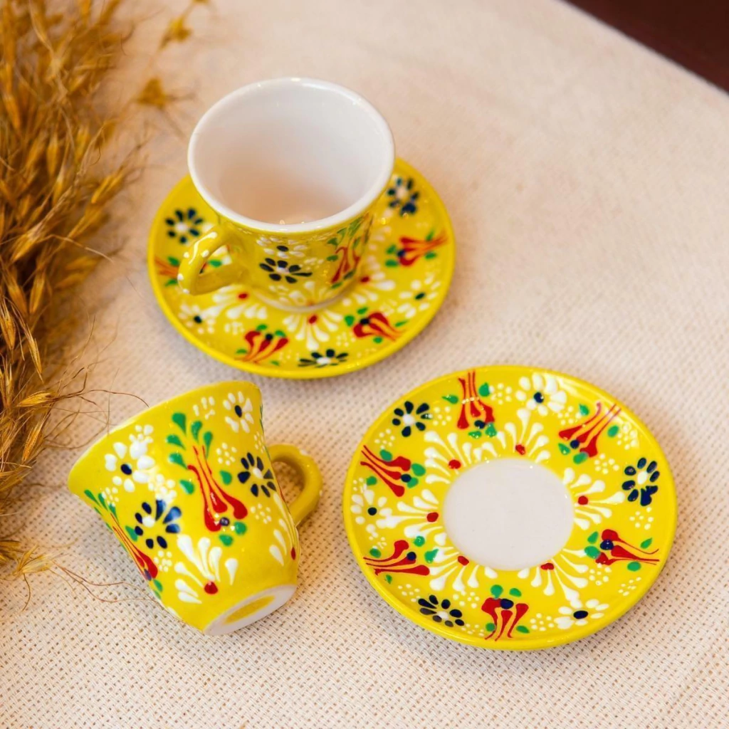 Dupla de Xícaras Pintadas à Mão Importadas da Turquia (Amarelo)