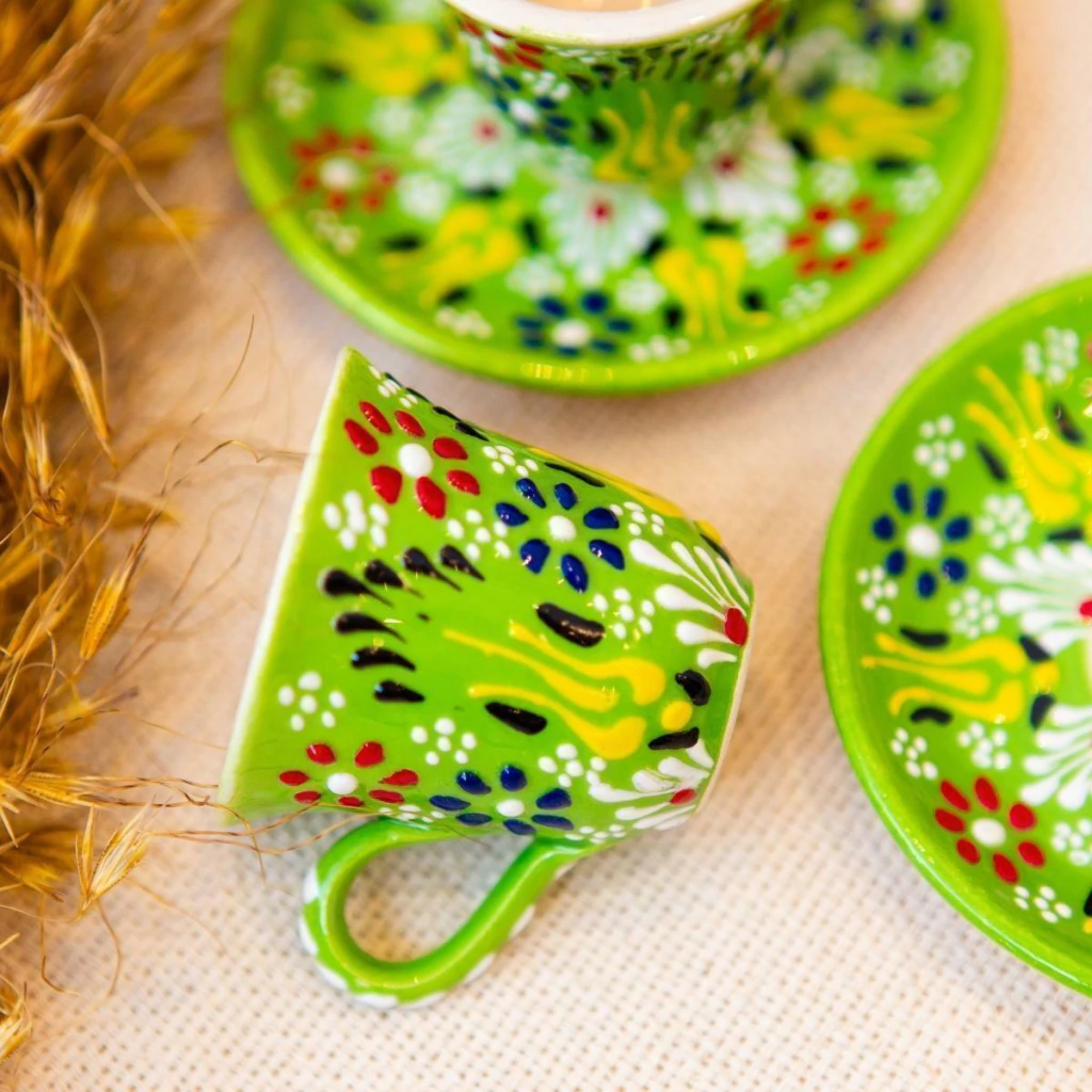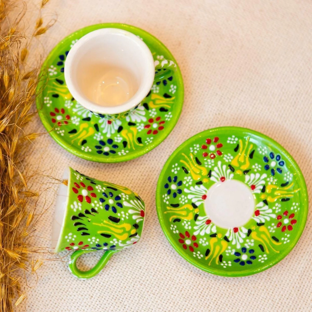 Dupla de Xícaras Pintadas à Mão Importadas da Turquia (Verde)