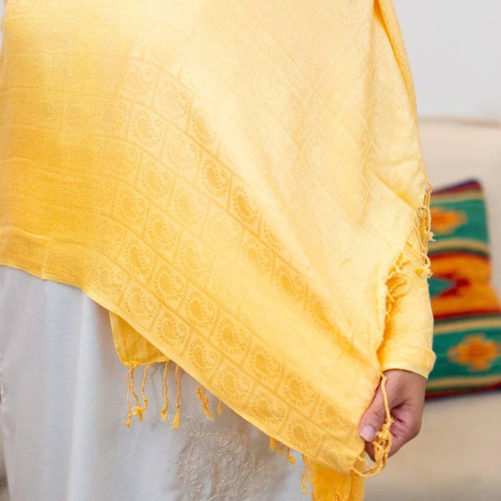 Echarpe Alto Relevo Arabesco 100% Viscose 100cmx180cm (Amarelo Claro)