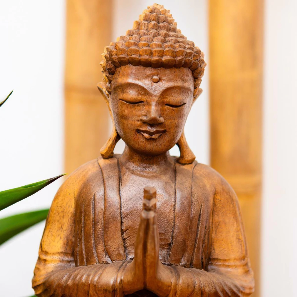 Escultura Buda Sidarta de Madeira 40cm (Mudra Oração)