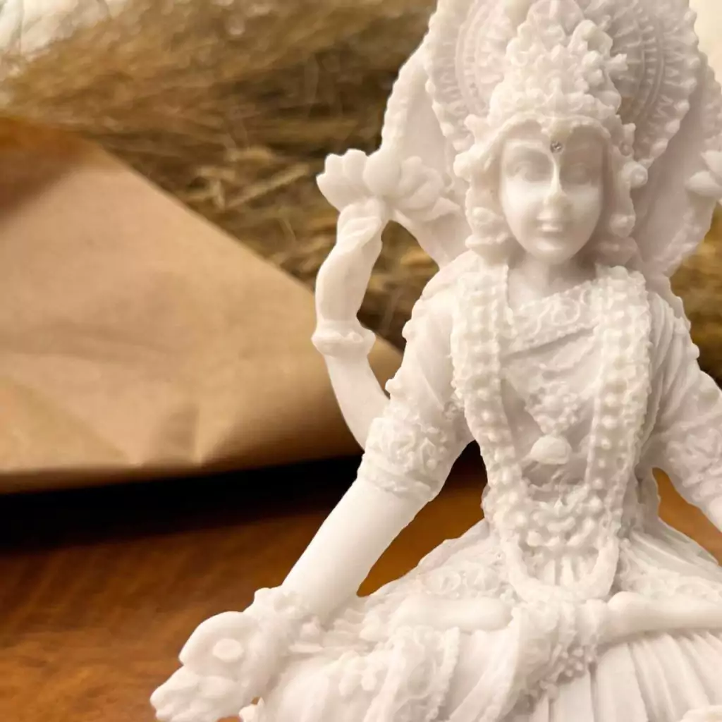 Escultura Lakshmi na Flor de Lótus de Pó de Mármore 14cm