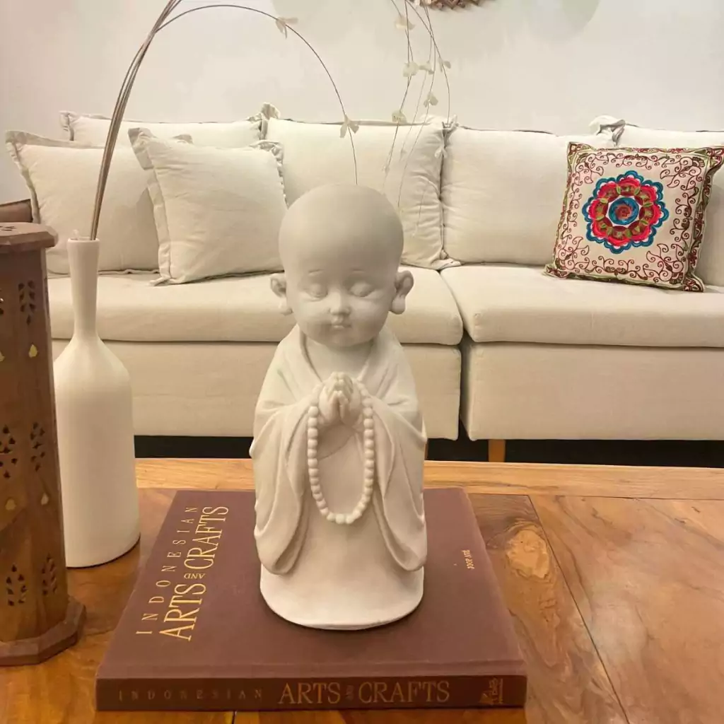 Escultura Monge em Oração de Pó de Mármore 28cm
