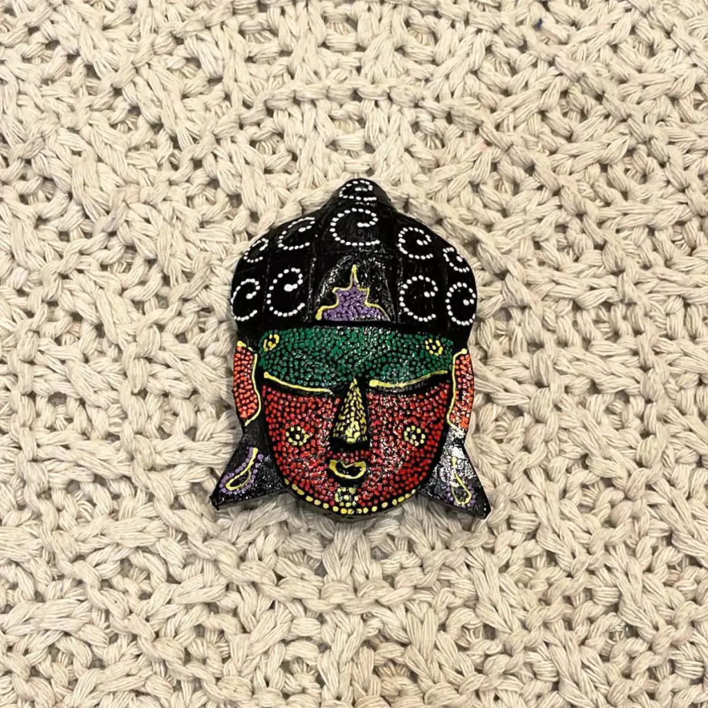Imã Pintado de Madeira Cabeça de Buda 8cm