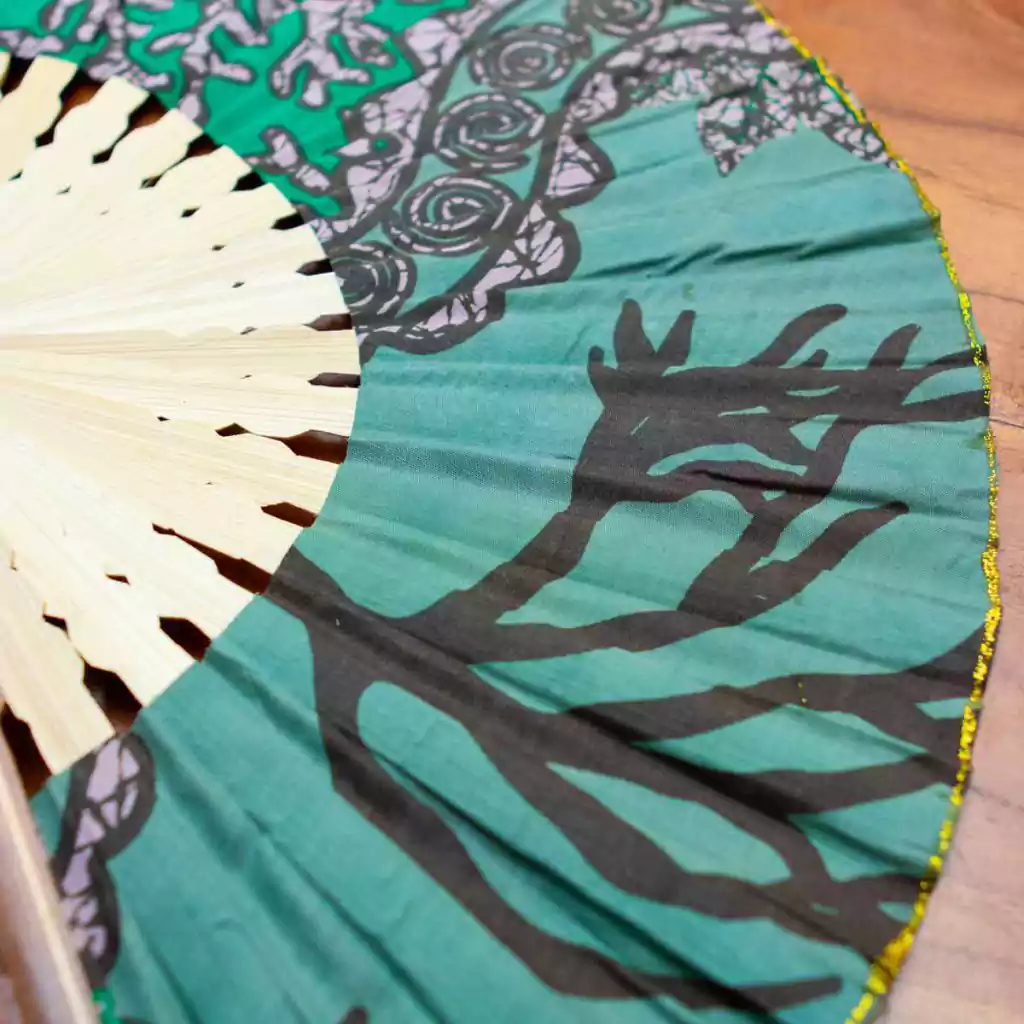 Leque Batik de Bambu e Algodão Importado de Bali