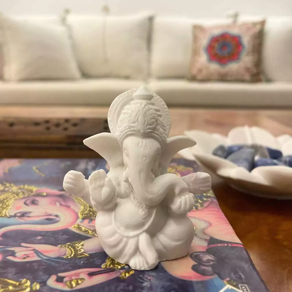 Mini Escultura Ganesha Pó de Mármore 7cm