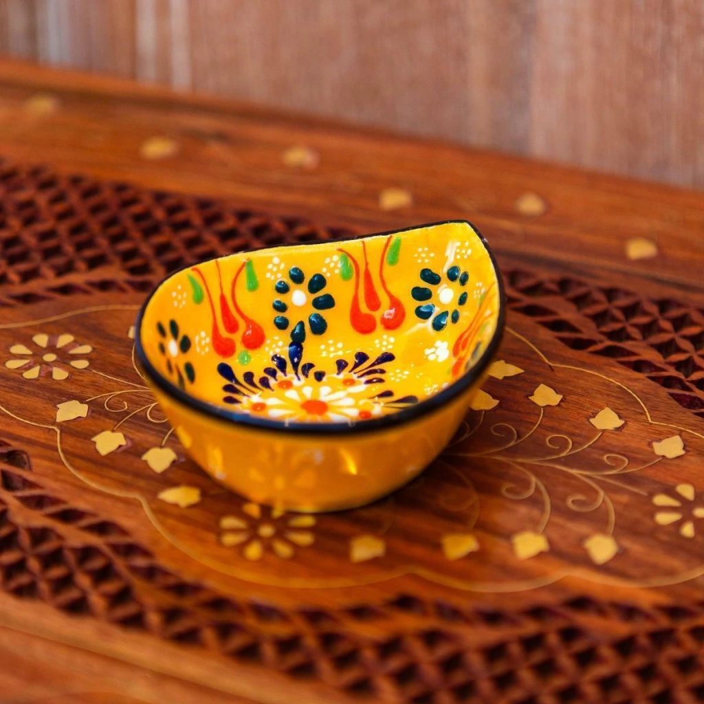 Mini Petisqueira Pintada à Mão Importada da Turquia (Amarelo)