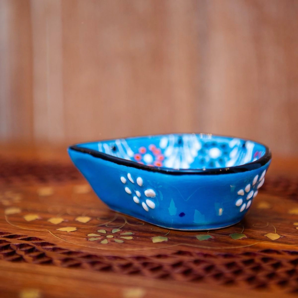 Mini Petisqueira Pintada à Mão Importada da Turquia (Turquesa)