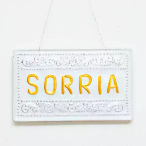 Placa Decorativa de Metal Sorria