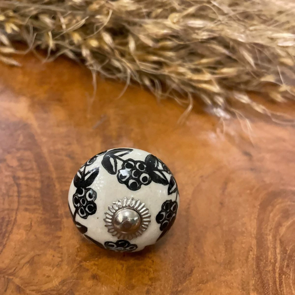 Puxador de Cerâmica Branco & Preto Importado da Índia