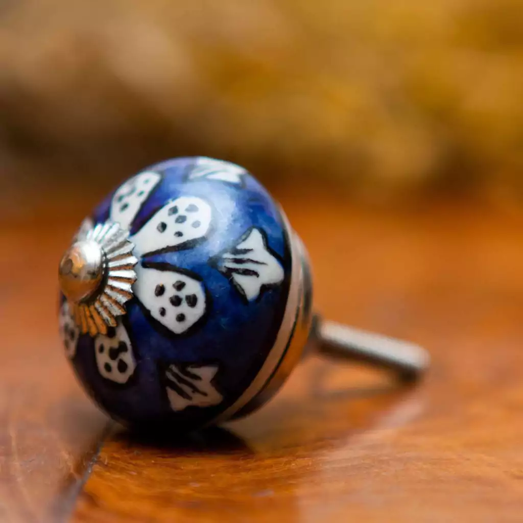 Puxador de Cerâmica Marinho & Branco Importado da India
