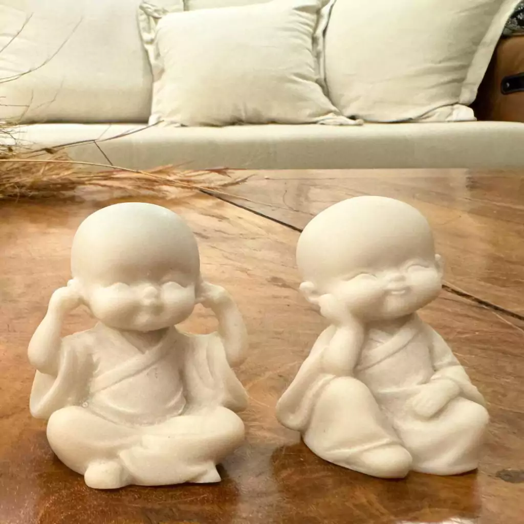 Os monges são religiosos que vivem comunitariamente num mosteiro, optando pela vida austera e afastada da sociedade. Decorar ambientes com esculturas de monges trazem harmonia com a energia pura existente.O Mudra de oração significa a gratidão e adoração aos Deuses.