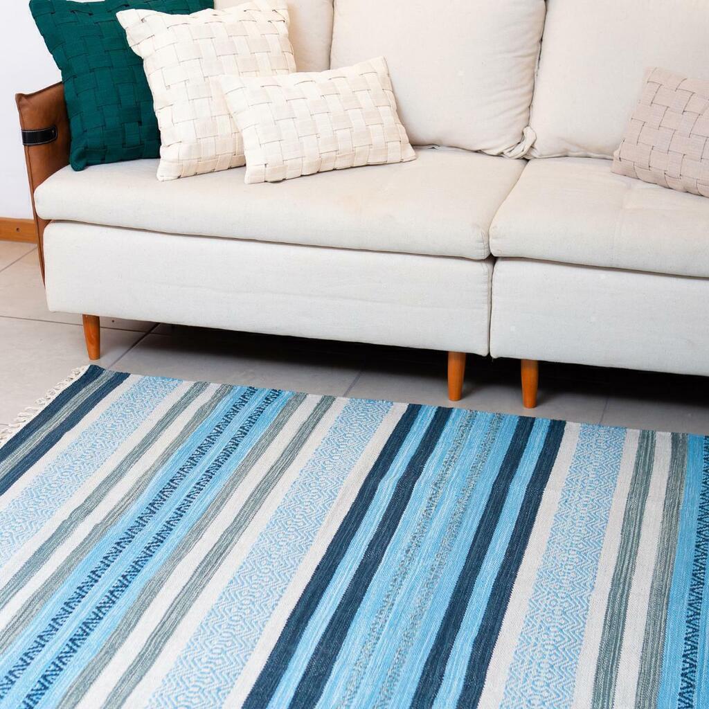 Tapete Chicago 100% Algodão Azul & Cinza Importado da Índia