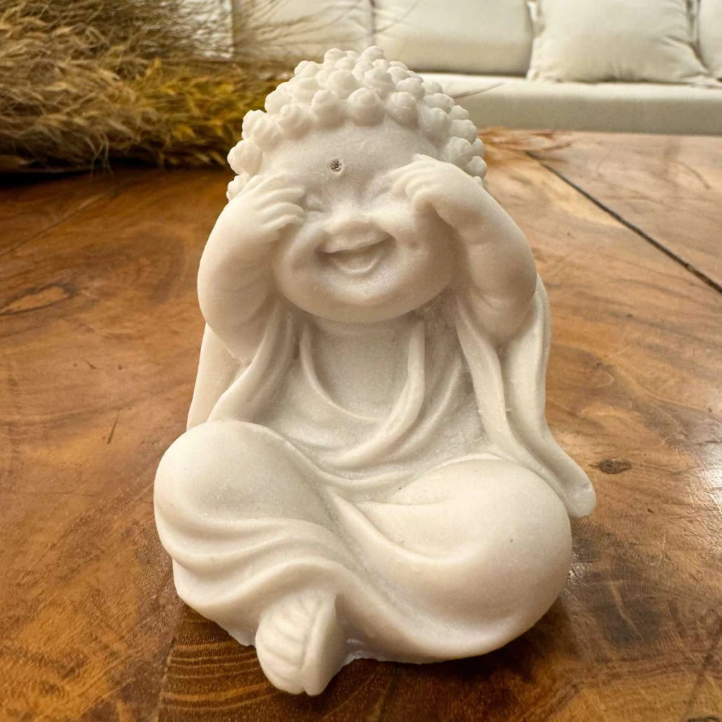 Trio de Esculturas Baby Monges Sábios de Pó de Mármore